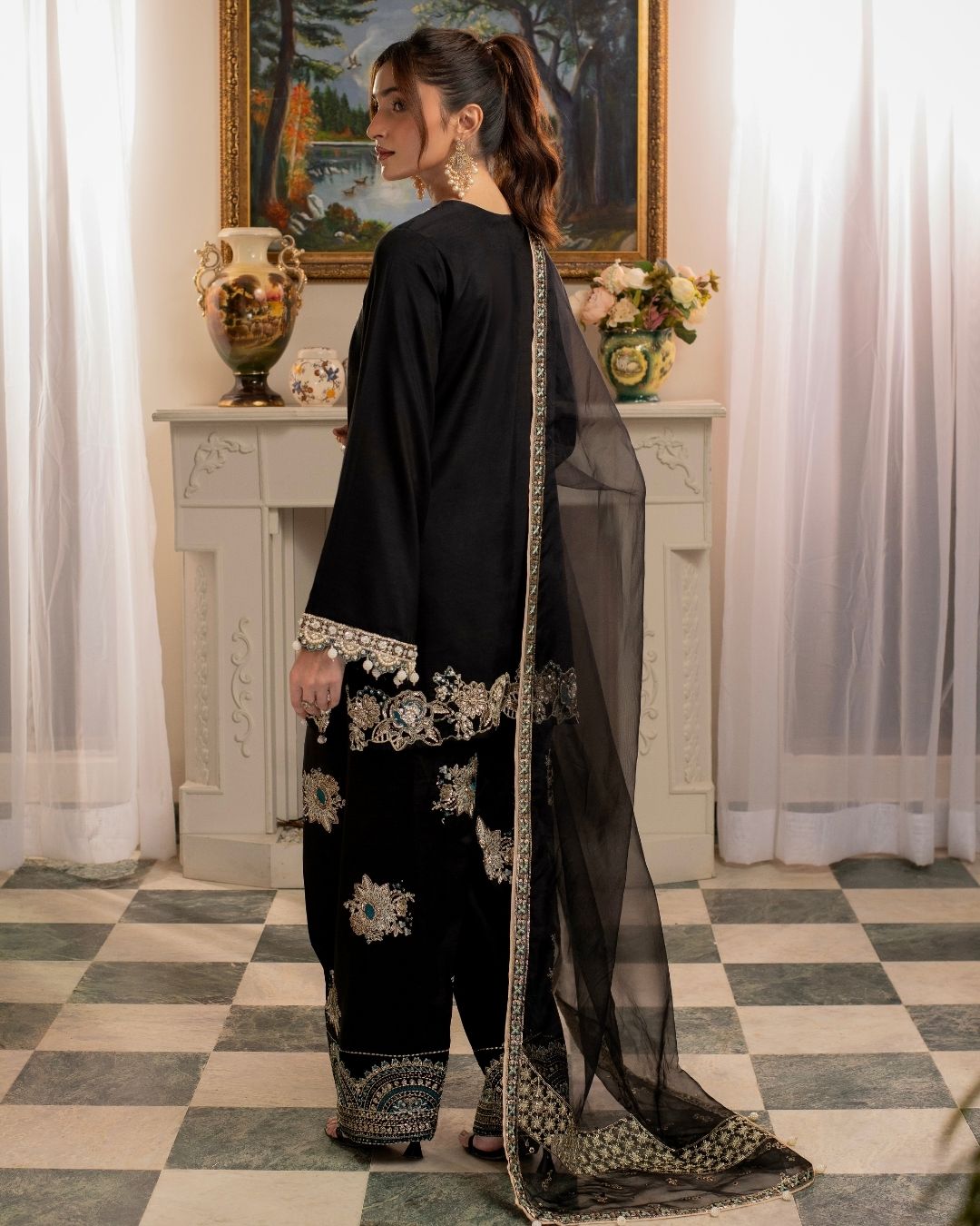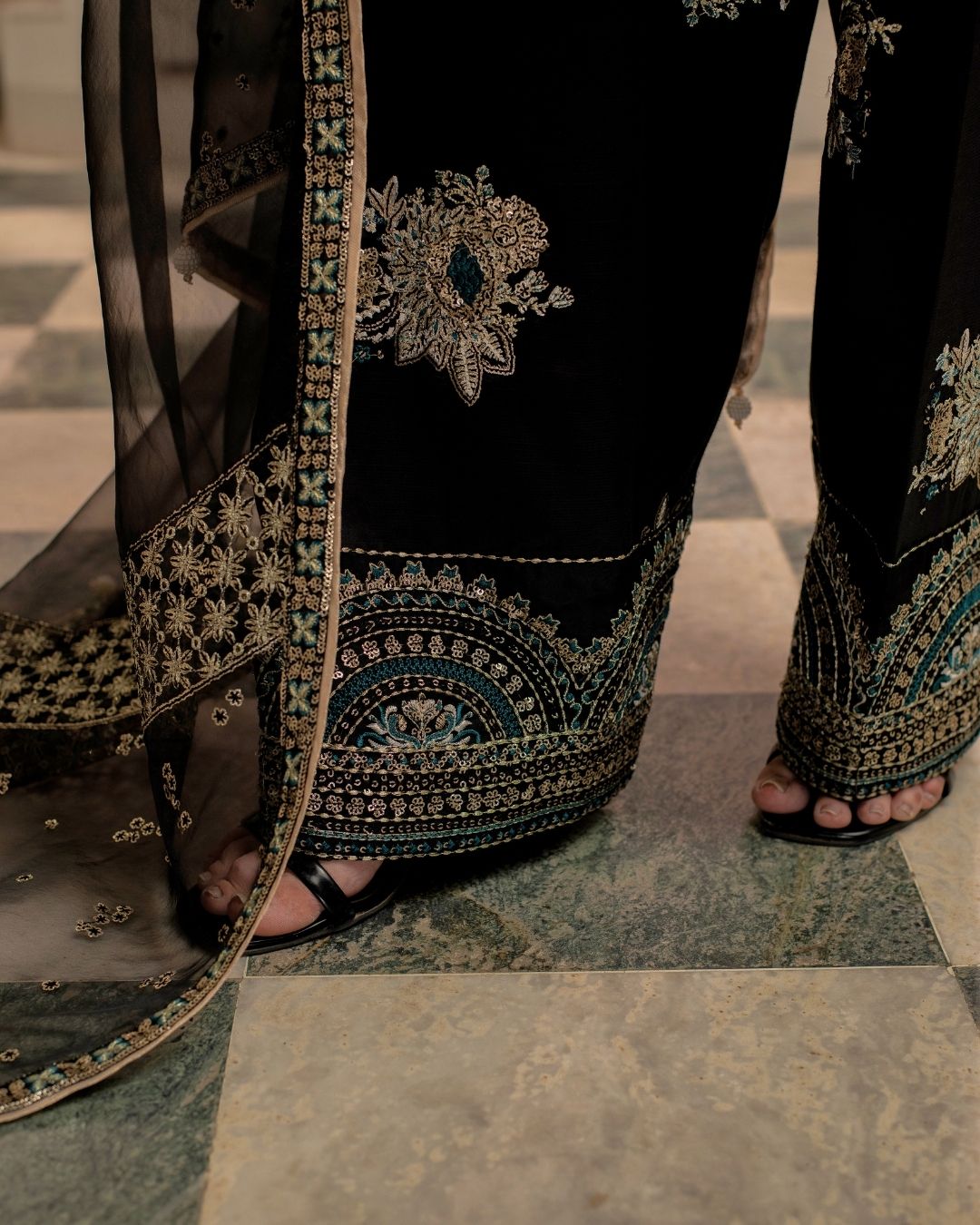 Key Embellishments: Multihead Gala (Fully Embellished), Multihead and Embellishment Border, Embroidery Boti and Border.